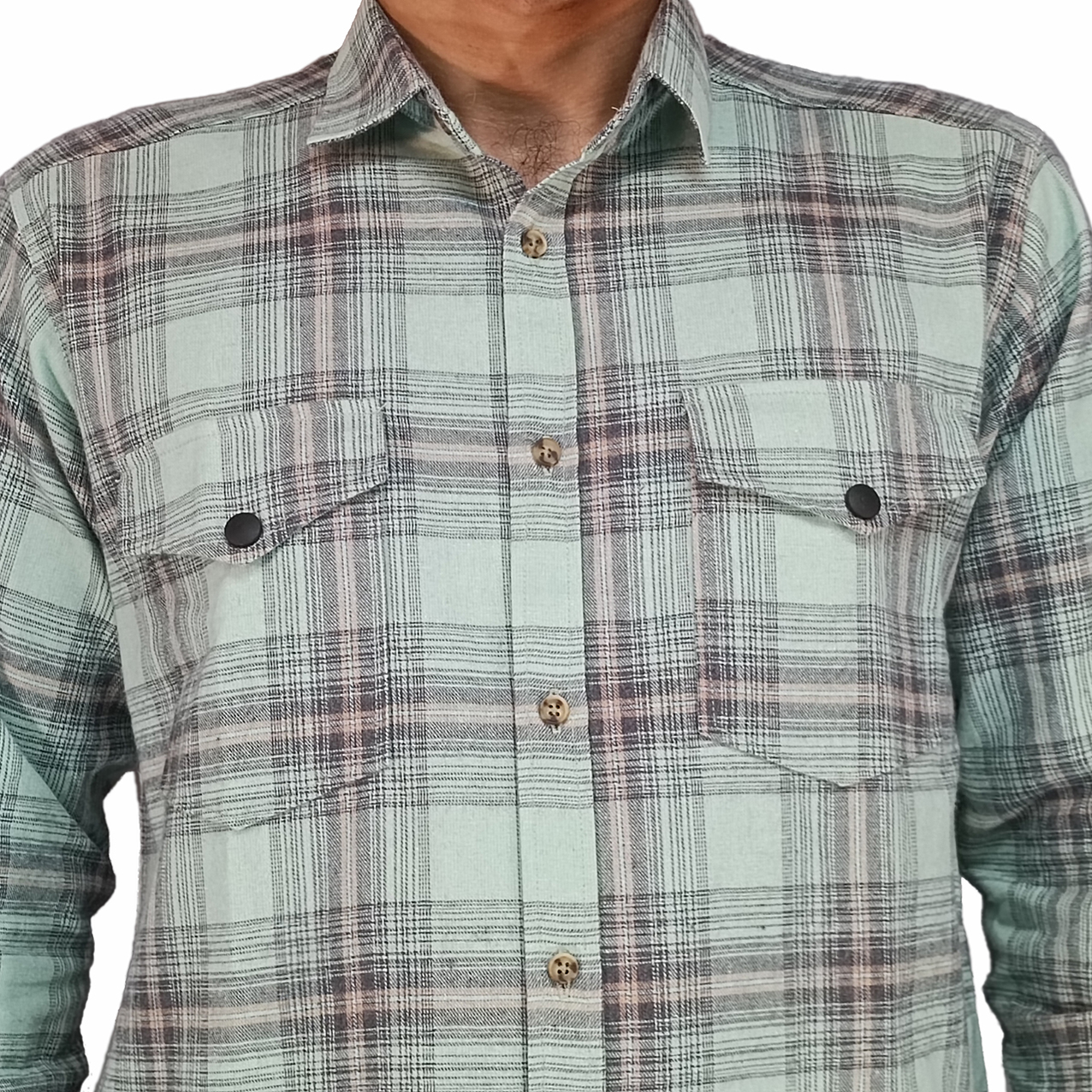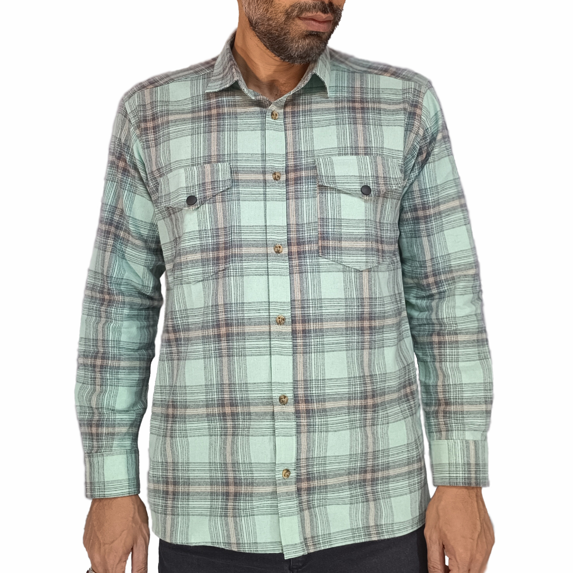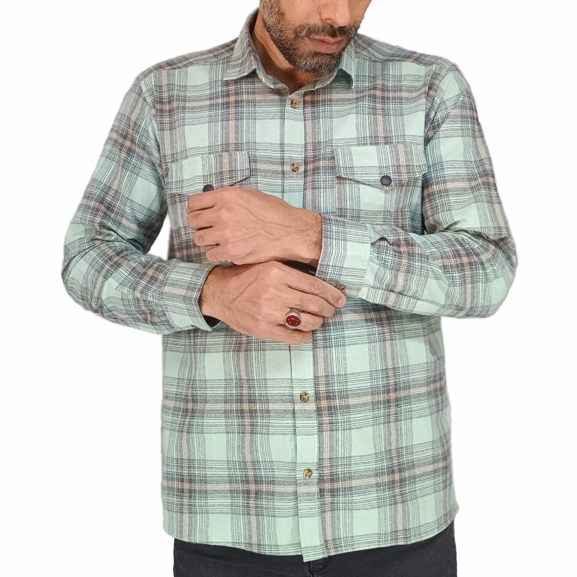 پیراهن چهارخانه پشمی دو جیبب سبز آبی