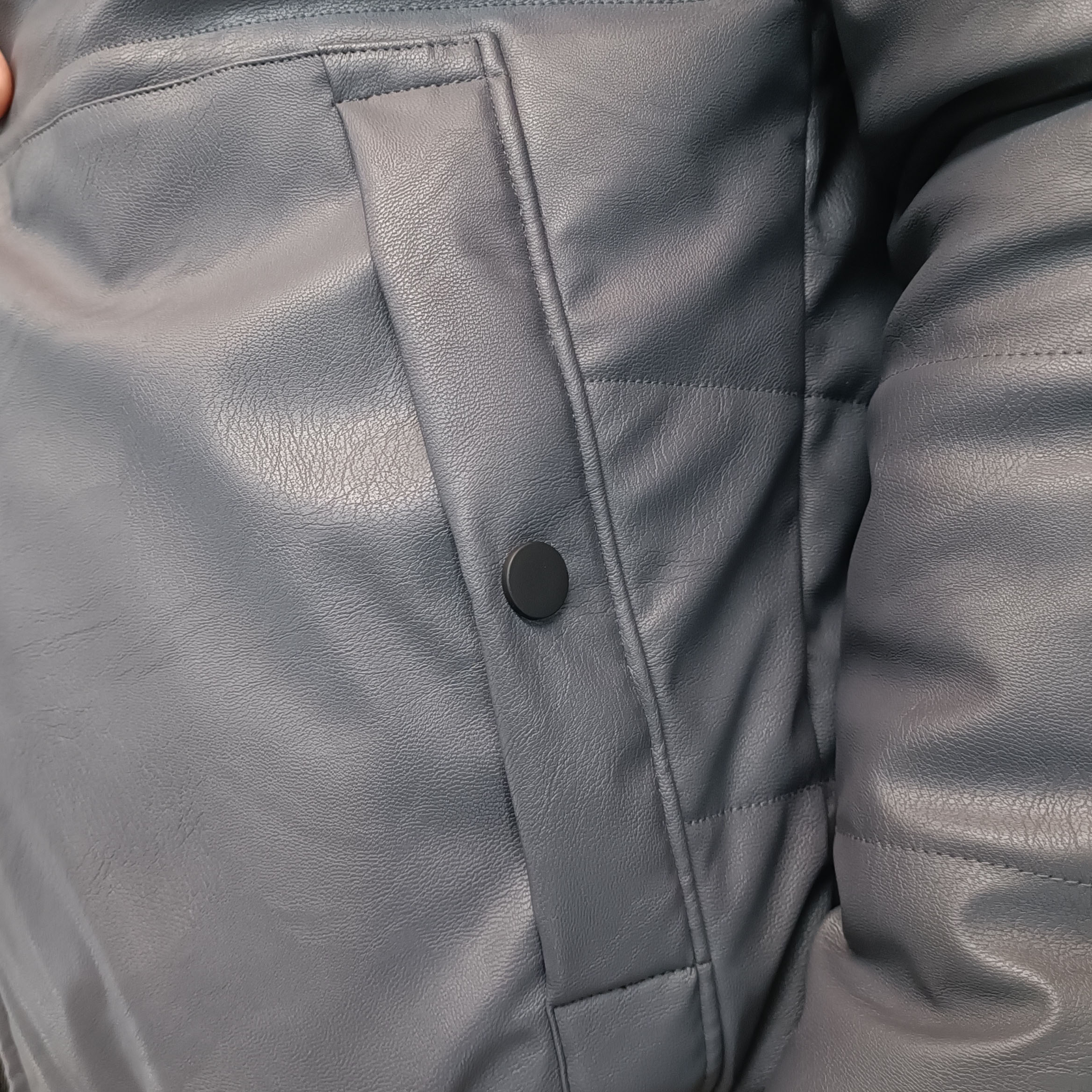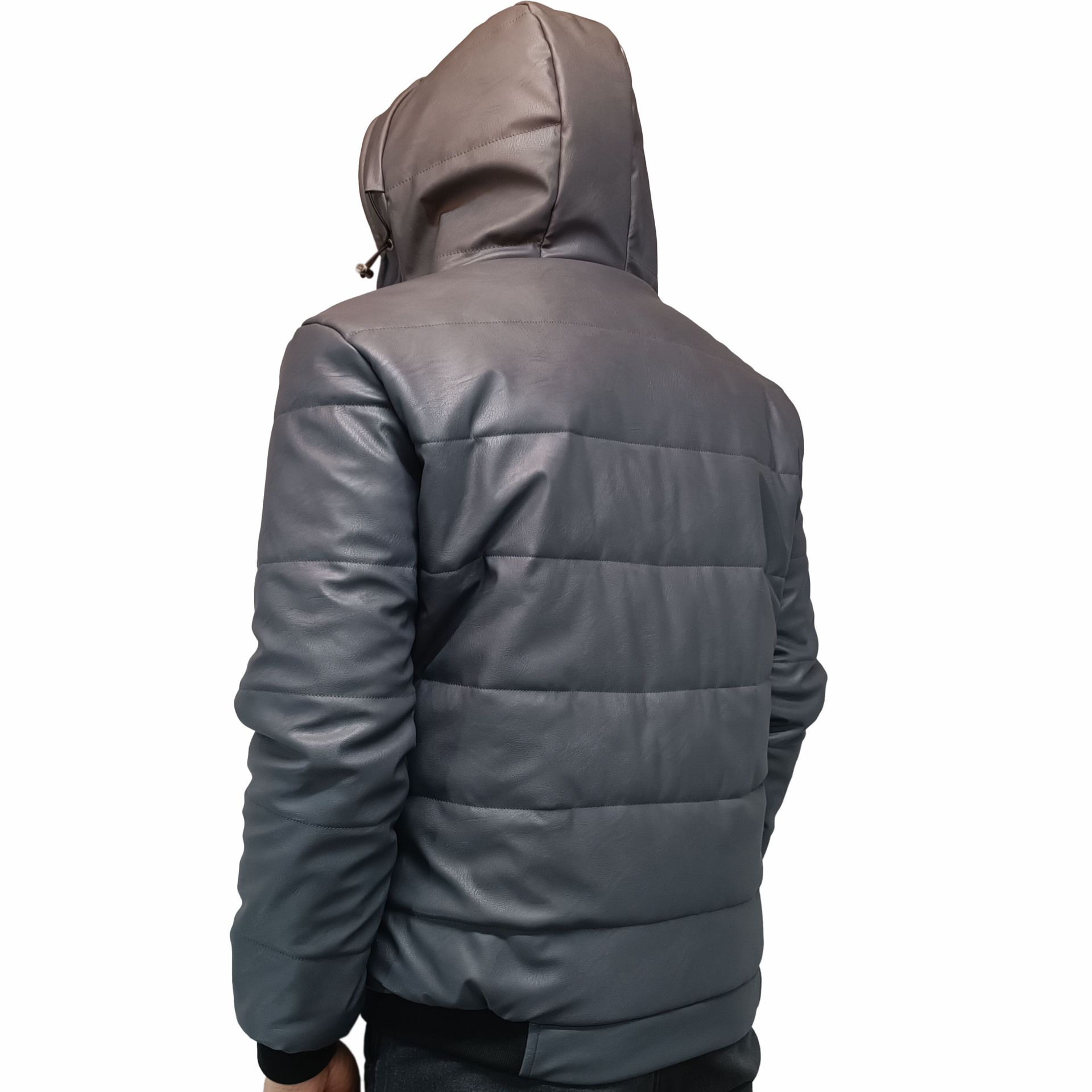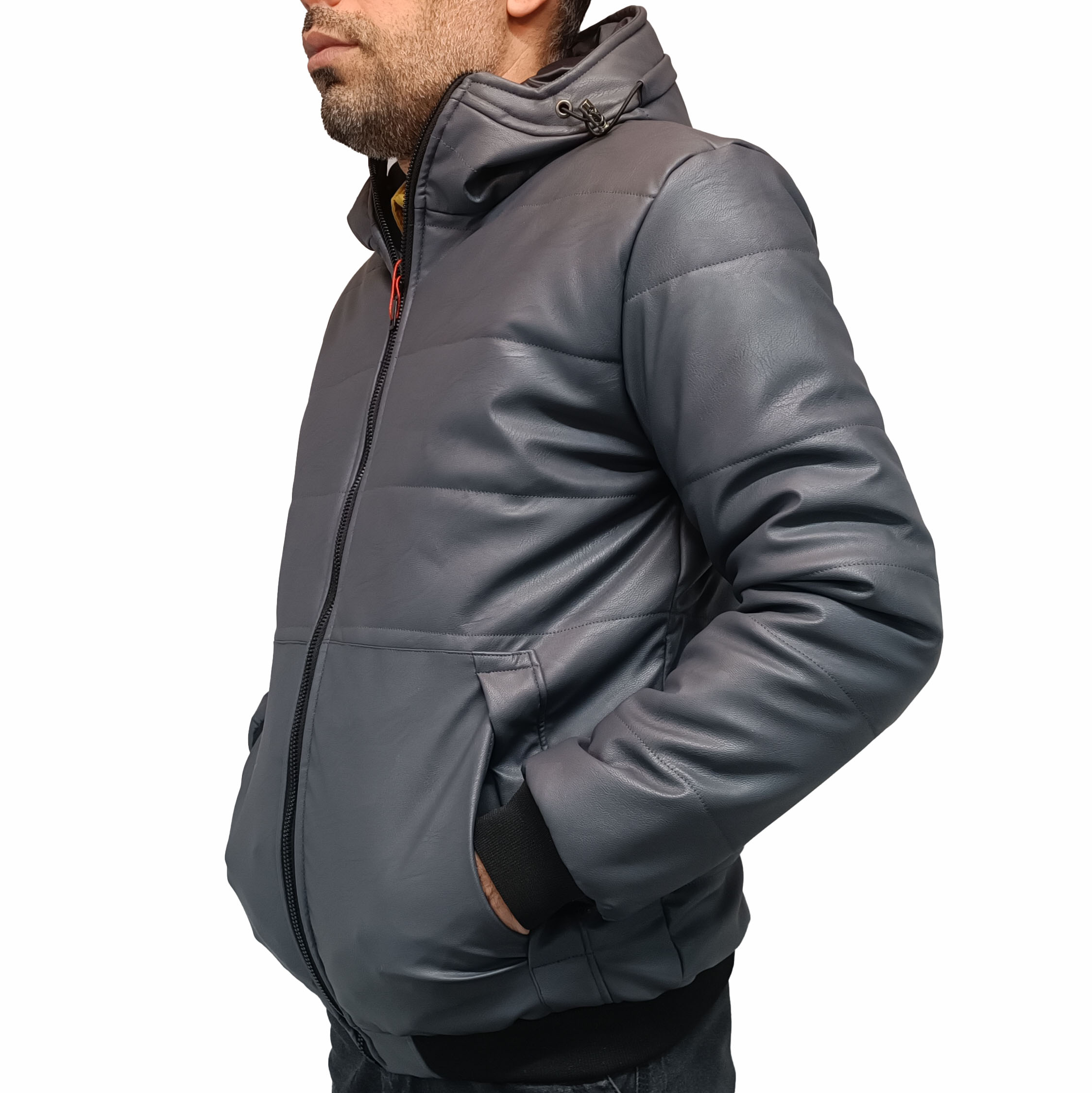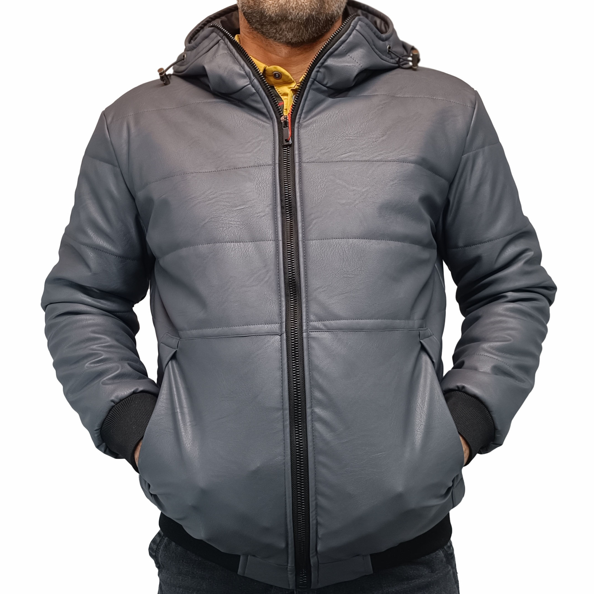 کاپشن چرم سیلیکونی کلاهدار طوسی
