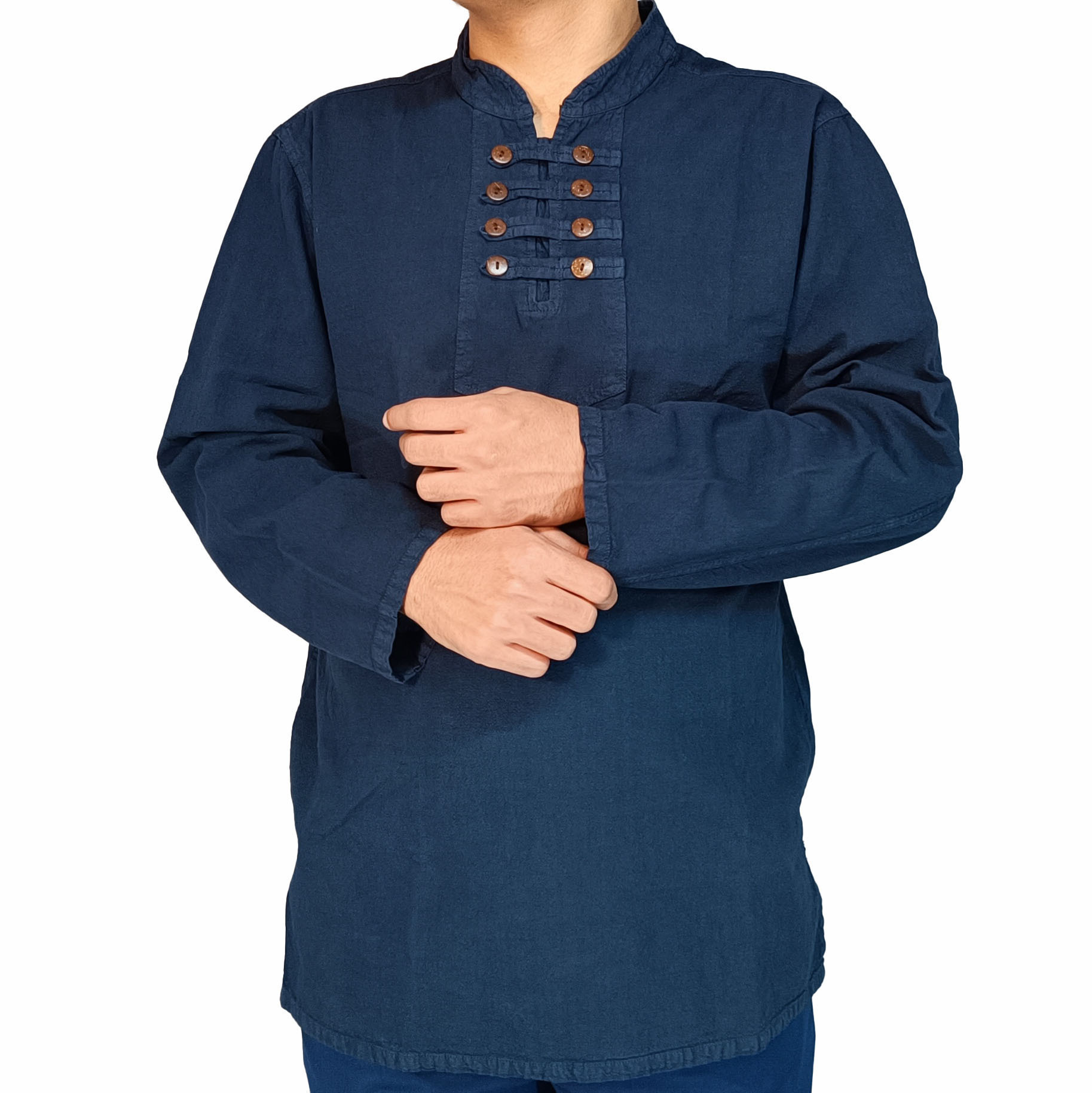 پیراهن الیافی هشت دکمه سرمه ای