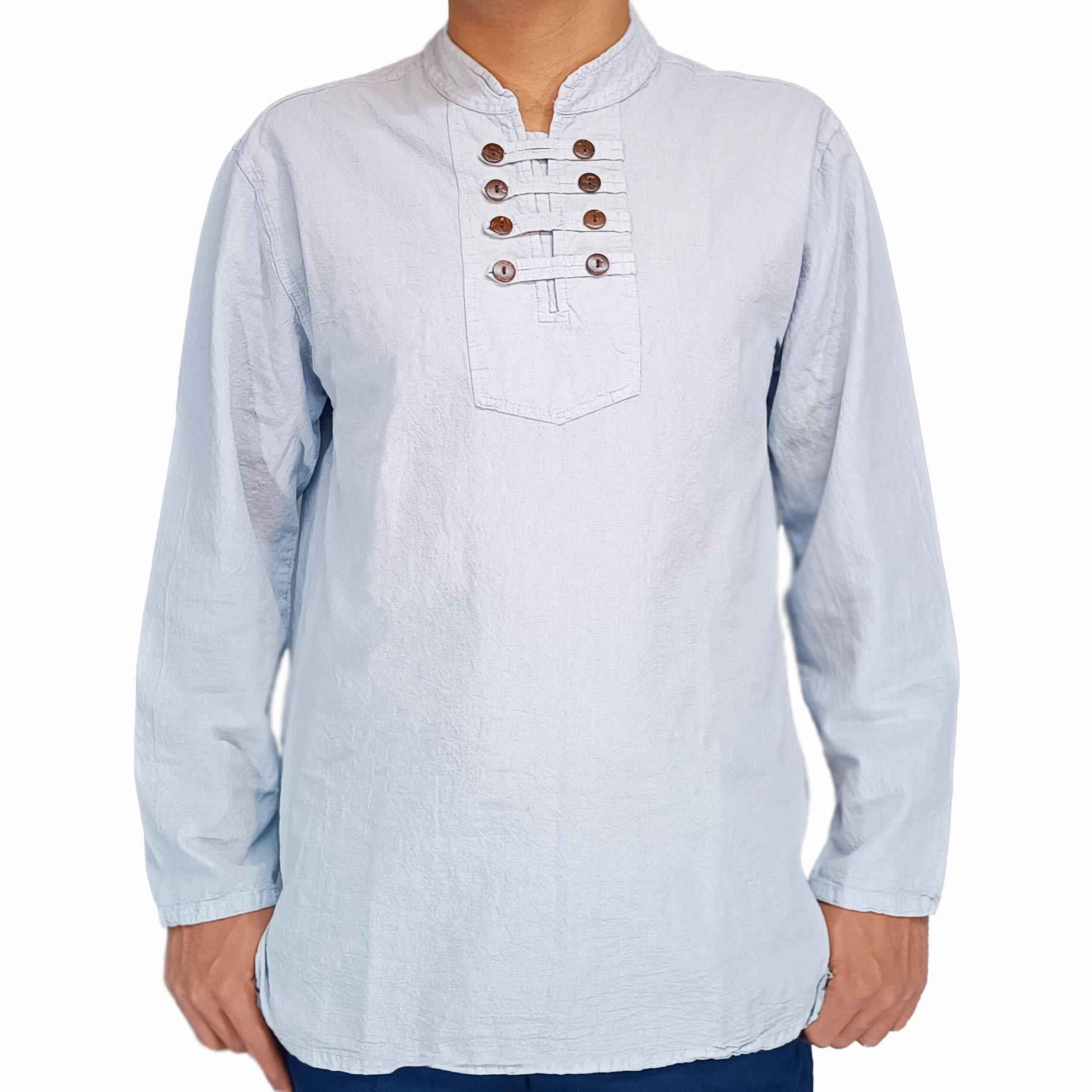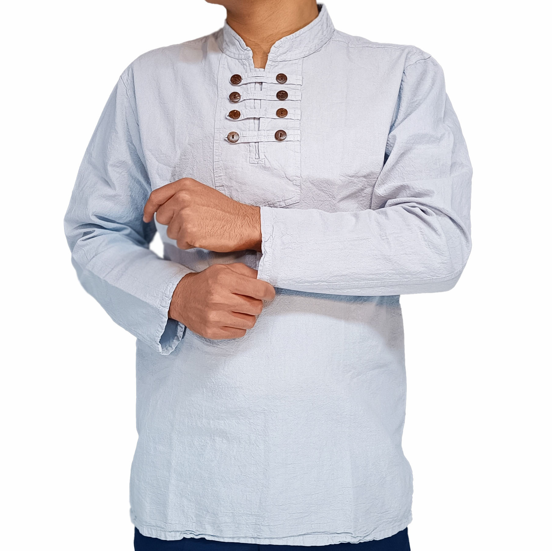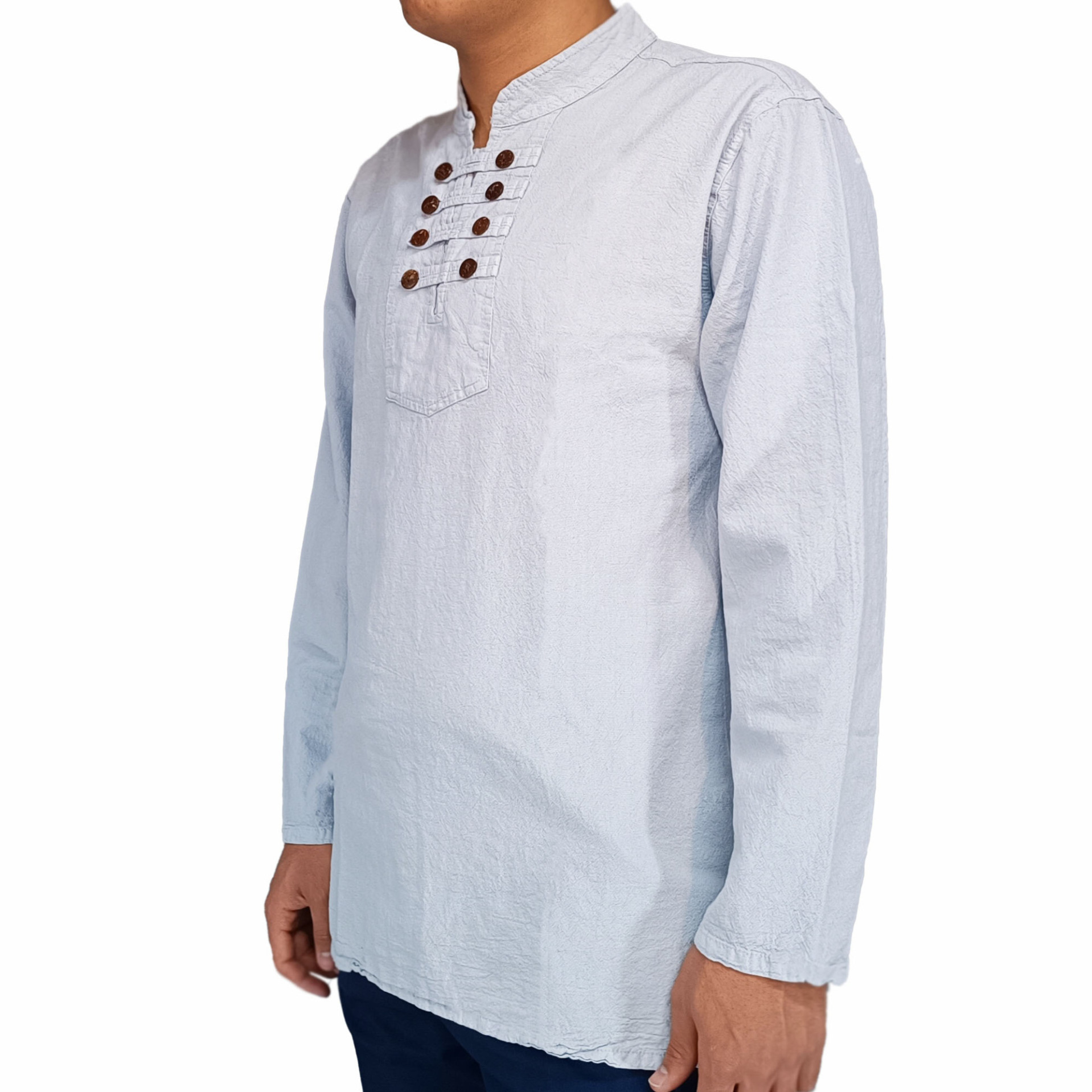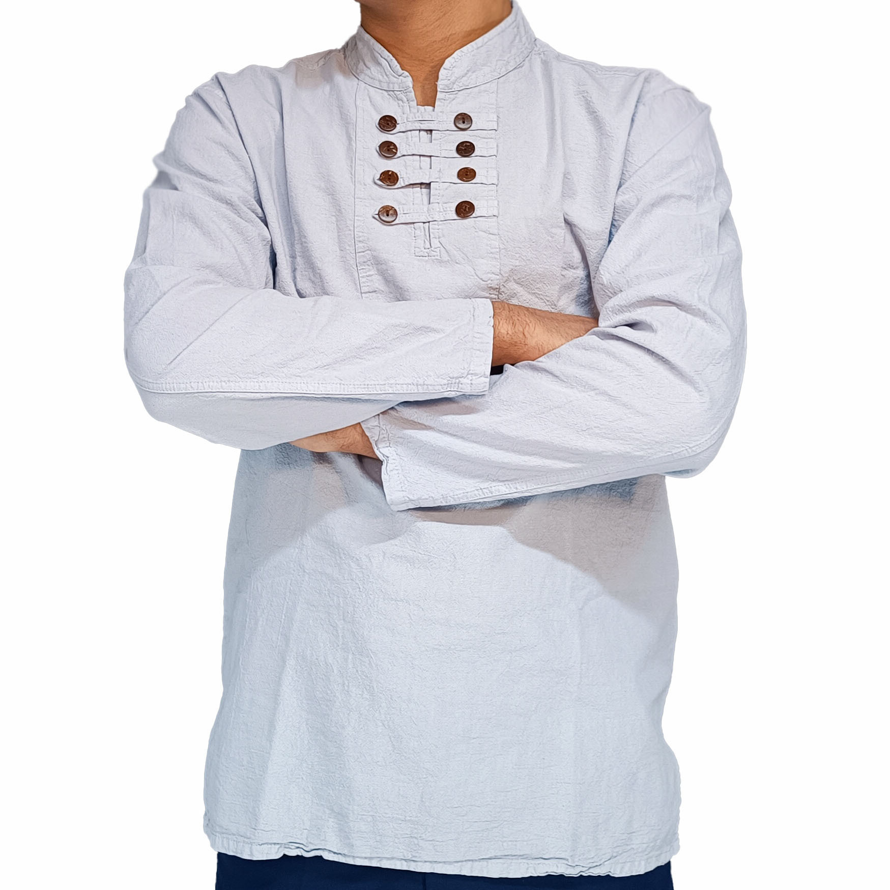 پیراهن الیافی هشت دکمه سفید گچی