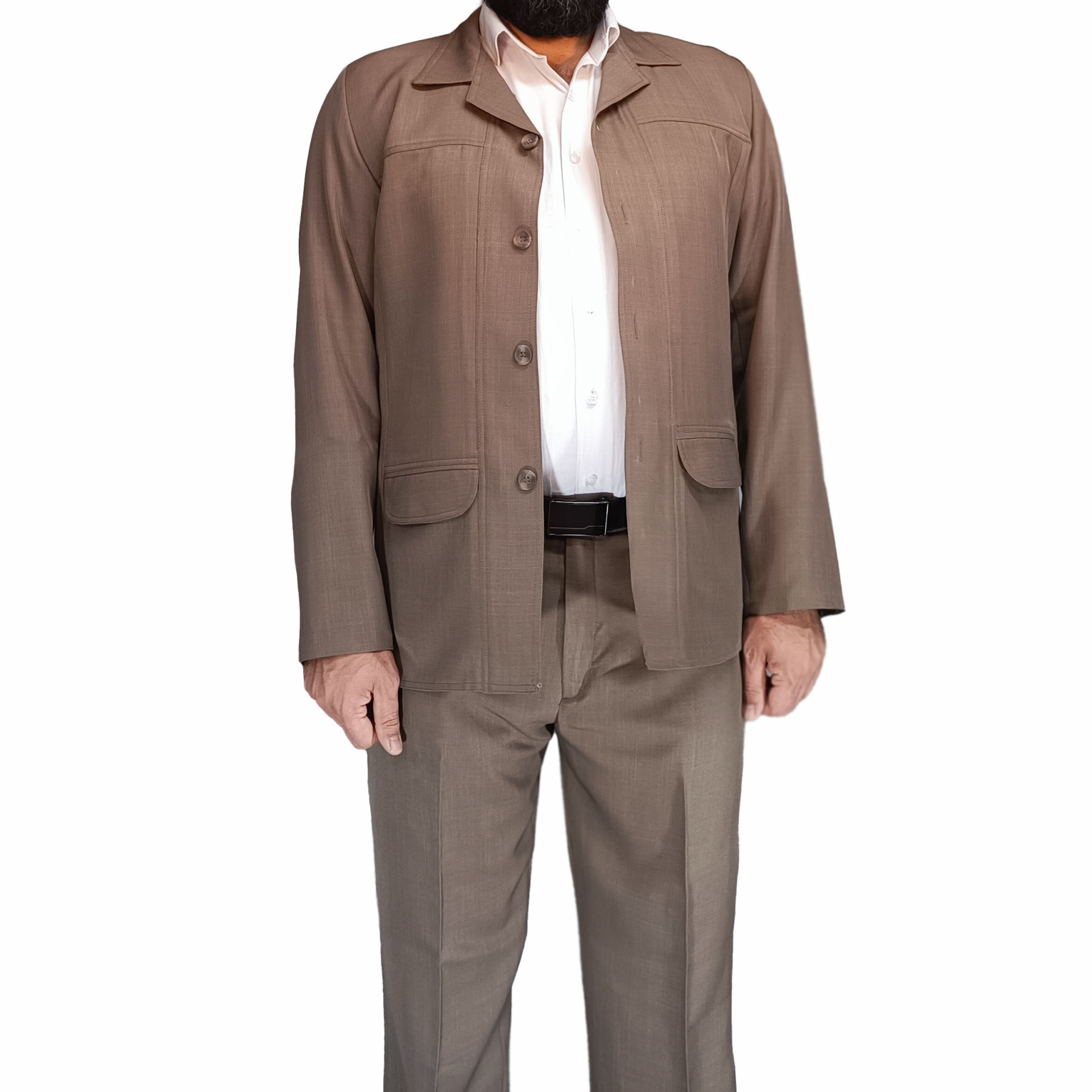 کت و شلوار طرح لبنانی با پارچه تایوانی و رنگ قهوه ای