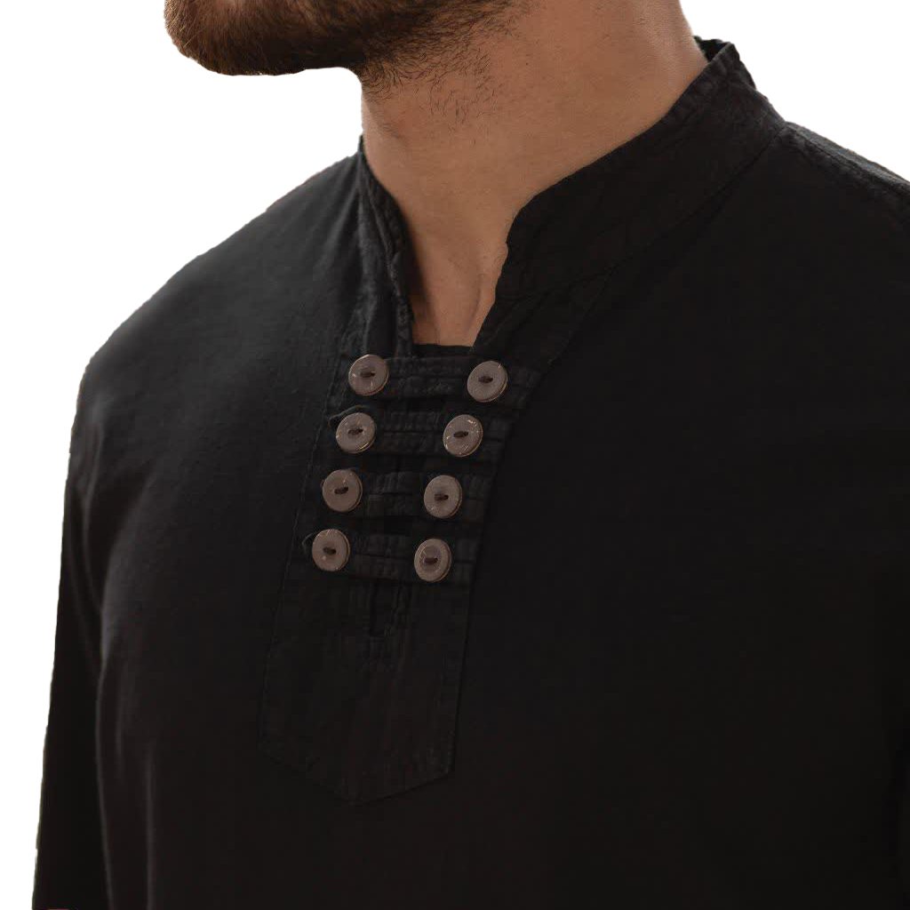 پیراهن الیاف طبیعی هشت دکمه مشکی کد 815