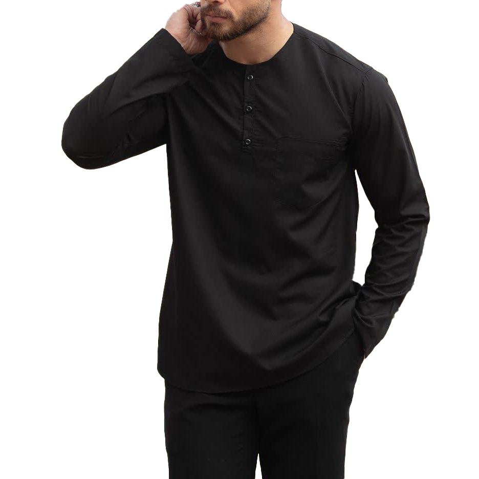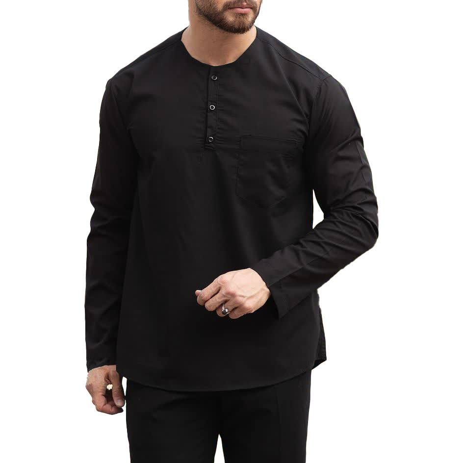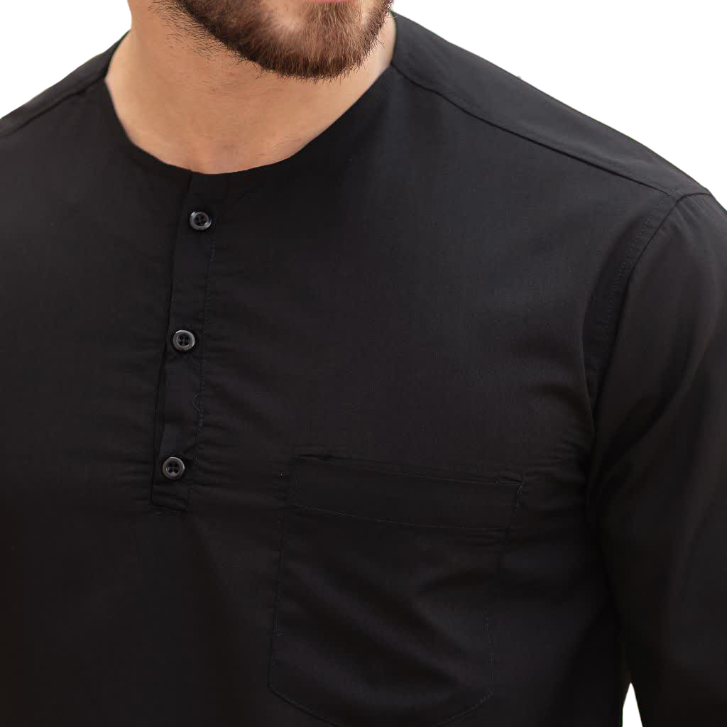 پیراهن تترون طرح بدون یقه نیم دکمه مشکی کد 111