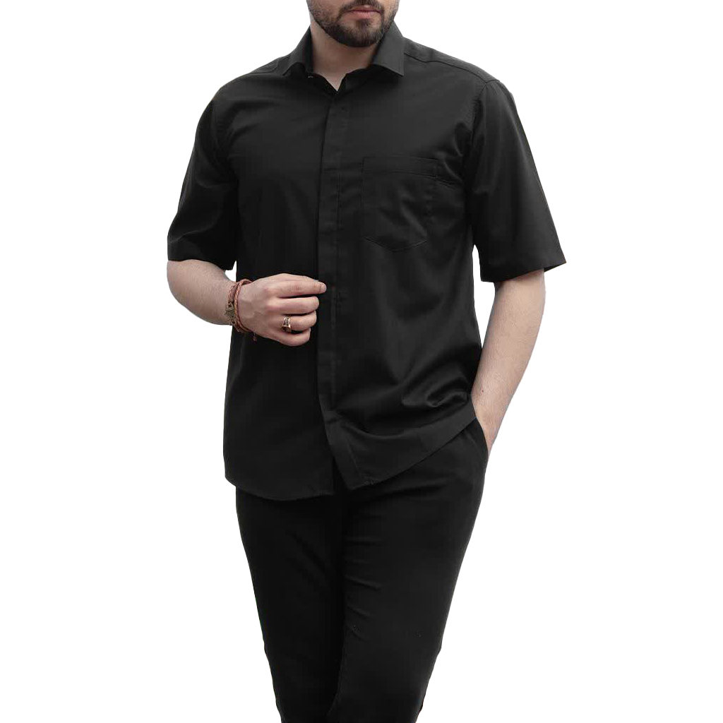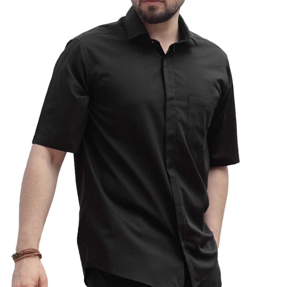 پیراهن تترون طرح یقه دار آستین کوتاه دکمه مخفی کد 125
